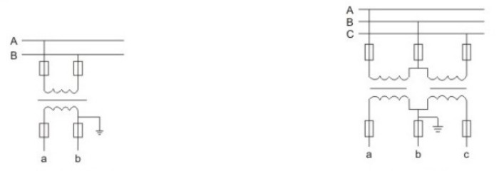 Schéma zapojení jednofázového vedení Schéma zapojení třífázového vedení